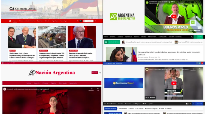 Contenido Automatizado: En solo un mes, la red publicó 11.391 artículos. Aunque abarcan temas de varios países, el 16,79% de las notas se centran en Venezuela, promoviendo una visión positiva de Delcy y Jorge Rodríguez.