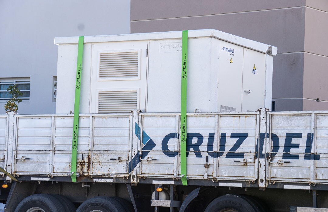 La subestación está compuesta por un conjunto integrado de elementos —transformador, celdas de media tensión y llaves de baja tensión— contenidos en una estructura de hormigón, con un peso aproximado de 7 toneladas. Este equipamiento es provisto desde Buenos Aires, dado que no se fabrica en la región.