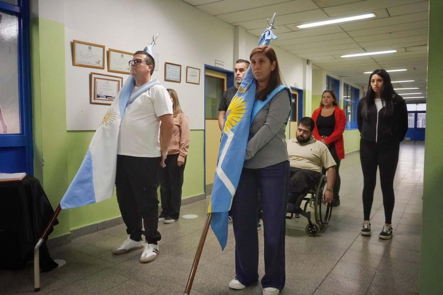 El acto reunió a estudiantes, docentes, personal auxiliar y autoridades, entre ellas la directora general de Acción Educativa, Formal y No Formal de la Municipalidad de Rawson, Gabriela Locaso, y el director de la EMAL, Luis Walker.