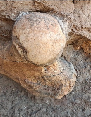 El fémur se caracteriza por tener un color anaranjado y explicaron que la tonalidad se debe a que estaba en antiguos suelos encharcados donde la circulación de óxidos de hierro tiñó los sedimentos. Fue este ambiente que favoreció la conservación del hueso y permitió distinguir estrías de inserciones musculares que ofrecerán claves inéditas sobre la estructura interna y la fisiología del animal.