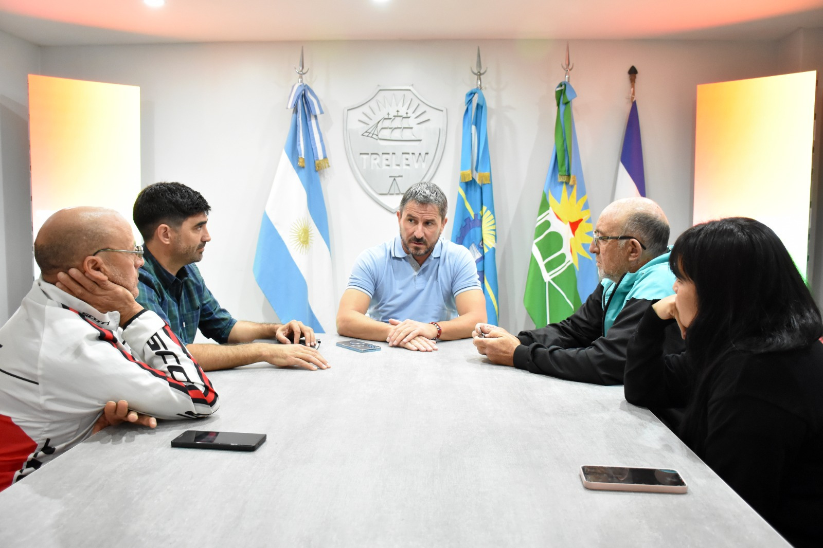 El intendente de Trelew, Gerardo Merino, recibió, junto al secretario de Planificación y Desarrollo Urbano, Julián Montes, a miembros de la Asociación Civil Plan de Viviendas Barracas, donde se abordó la reactivación de la obra del barrio Barracas, paralizada desde hace más de tres décadas.