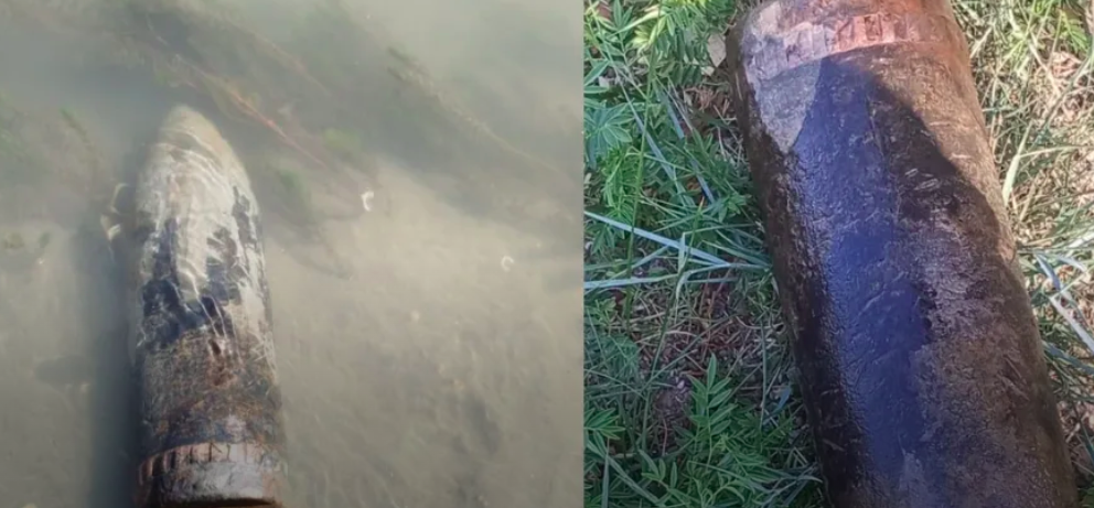 Peligro en Rawson: encuentran proyectil de artillería en el Río Chubut.