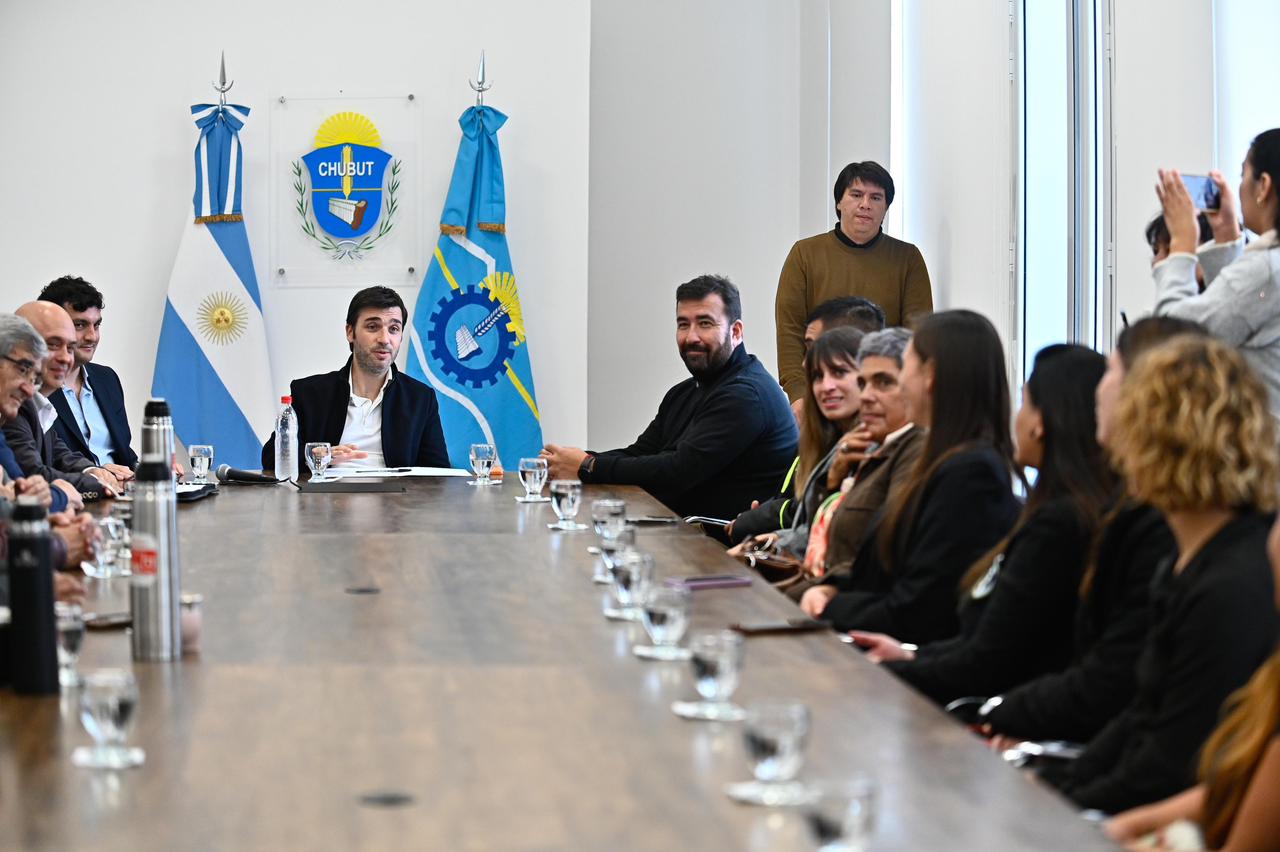 El acto se desarrolló este martes por la mañana en la Sala de Situación de la Casa de Gobierno, y participaron junto al mandatario el secretario general de UOCRA, Javier Moya; el presidente de la Asociación Empresaria Hotelera Gastronómica de Trelew y el Valle, Germán Scandroglio; y el secretario de Trabajo provincial, Nicolás Zárate.