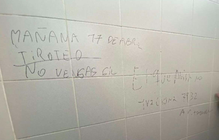 La situación también alcanzó a Rawson, donde en el Colegio Don Bosco apareció una inscripción con el mensaje «mañana tiroteo no vengas gil», lo que profundizó la preocupación por la repetición de este tipo de intimidaciones. Las autoridades educativas activaron los protocolos de seguridad.
