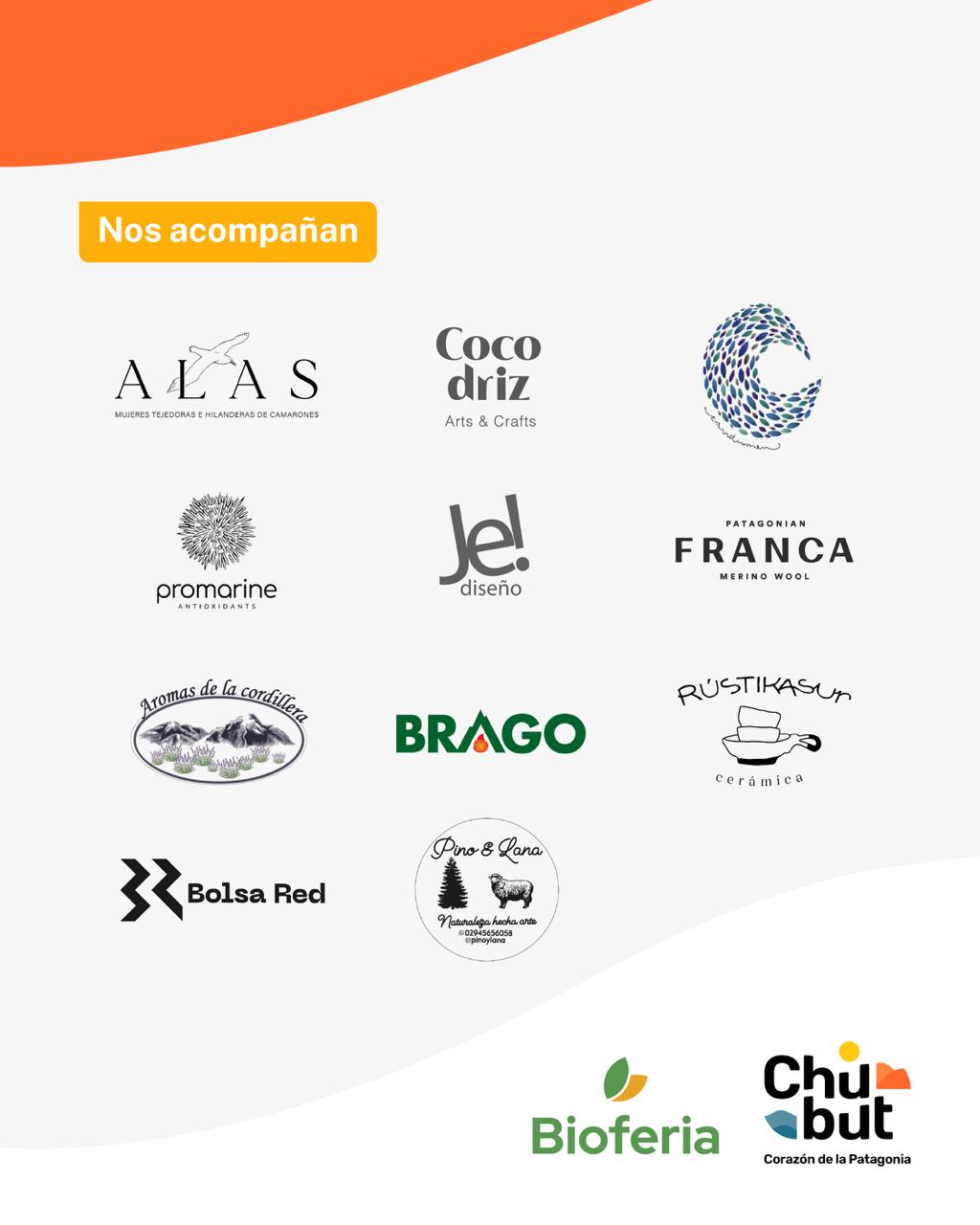 Pino y Lana, Bolsa Red, Brago, Promarine, Cocodriz, Alas, Je! Diseño, Aromas de la Cordillera, Rustikasur, Franca y Cardumen presentarán así productos sustentables tan variados como atractivos, que van desde diseños textiles, biocombustibles, cerámica artesanal, aceites corporales y perfumes naturales, entre otros productos.
