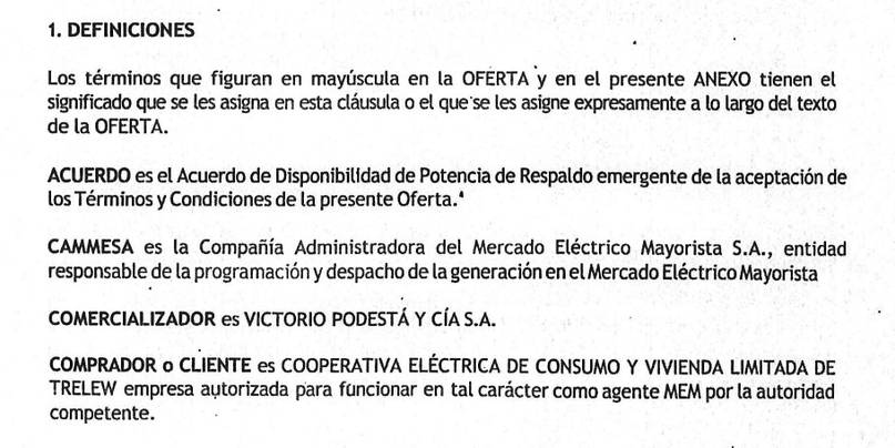 A través de una respuesta oficial a un requerimiento de información solicitado desde el Concejo Deliberante , el interventor judicial de la Cooperativa Eléctrica de Trelew , Juan Manuel Alfonsín , presentó el contrato que rige el suministro de potencia para la ciudad.