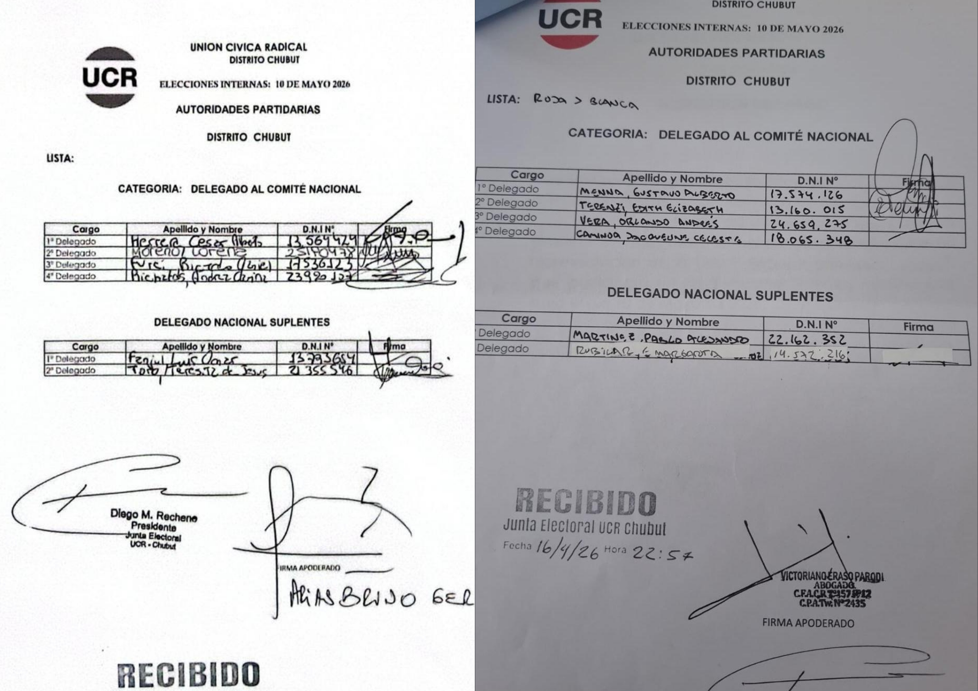 Se terminaron los acuerdos de cúpula. El cierre de listas para el Comité Nacional de la UCR dejó dos frentes claramente marcados: el oficialismo de «Nacho» Torres y Gustavo Menna frente a la resistencia territorial del intendente de Rawson Damián Biss y César Herrera.