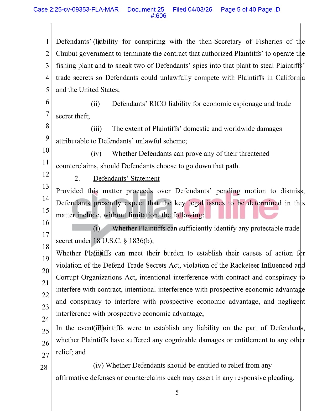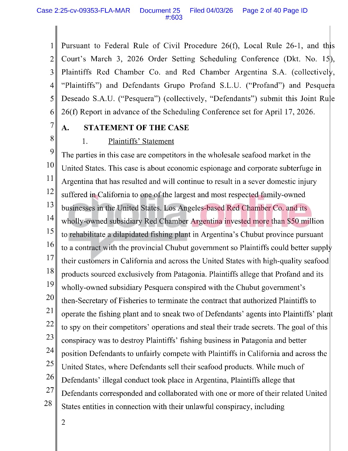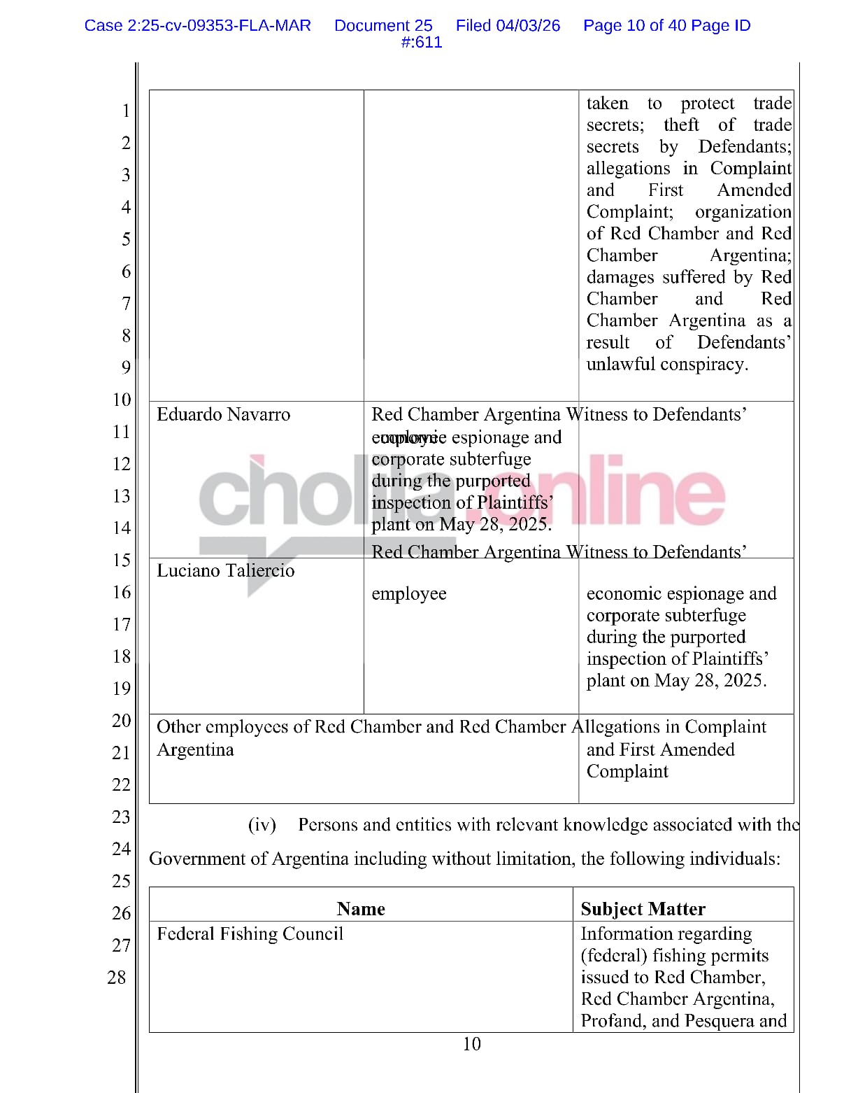 Red Chamber afirma haber invertido más de 50 millones de dólares para rehabilitar la infraestructura pesquera de Chubut. Ahora, la provincia queda expuesta a un litigio bajo leyes extremadamente severas en EE. UU., como la ley RICO (contra el crimen organizado) y la Ley de Secretos Comerciales (DTSA).