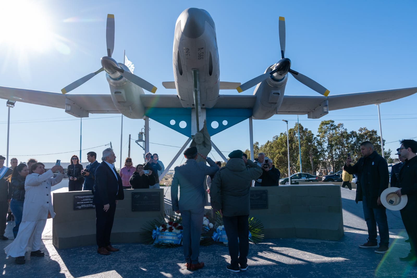 Del acto participaron el intendente, Othar Macharashvili, el vice intendente, Maximiliano Sampaoli; concejales; diputados; el jefe de la novena Brigada Aérea, Franco Gabriel Paglione; el jefe del destacamento naval capitán de Corbeta, Martín Sosa; jefes de las Fuerzas de Seguridad; miembros del gabinete municipal, personal militar superior, subalterno y tropa voluntaria de las Fuerzas Armadas, referentes de organizaciones locales y vecinos de la ciudad.