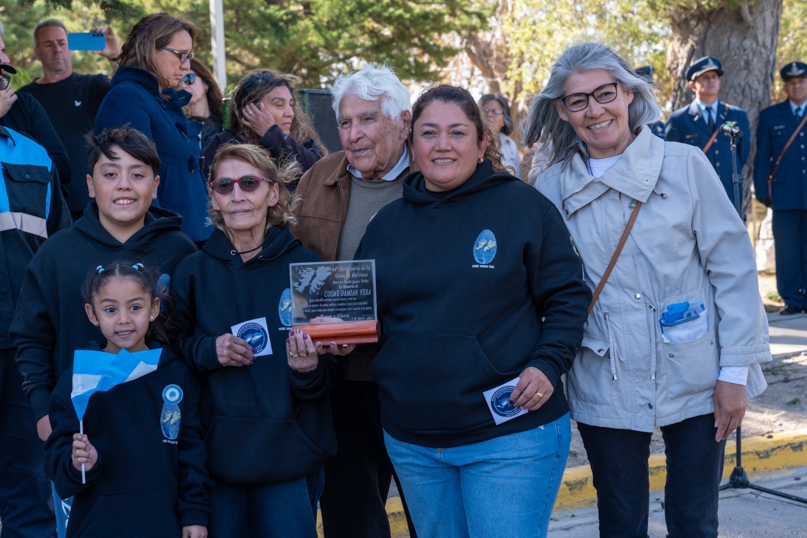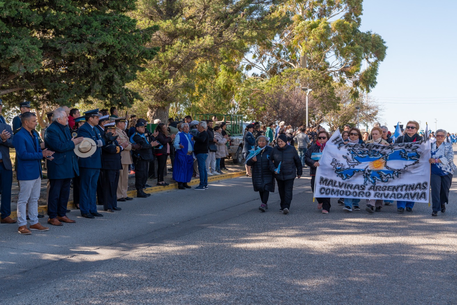 El acto contó con la presencia de concejales, autoridades de las Fuerzas Armadas y de Seguridad; el presidente del Centro de Veteranos de Guerra de Malvinas, Víctor Contreras e integrantes de dicha organización; el presidente de la Unión de Ex Combatientes de Malvinas, Luis Agüero; además de veteranos, familiares, representantes del Hospital Alvear y del Hospital Regional, la banda militar “Capitán Luis Candelaria” de la IX Brigada Aérea y vecinos de la ciudad.