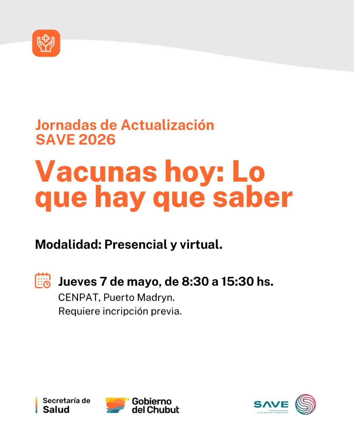 Como parte del plan de capacitaciones que promueve el Gobierno del Chubut, a través de la Secretaría de Salud, se realizará el próximo jueves 7 de mayo en Puerto Madryn la segunda edición de la Jornada de Actualización de la Sociedad Argentina de Vacunología y Epidemiología (SAVE).