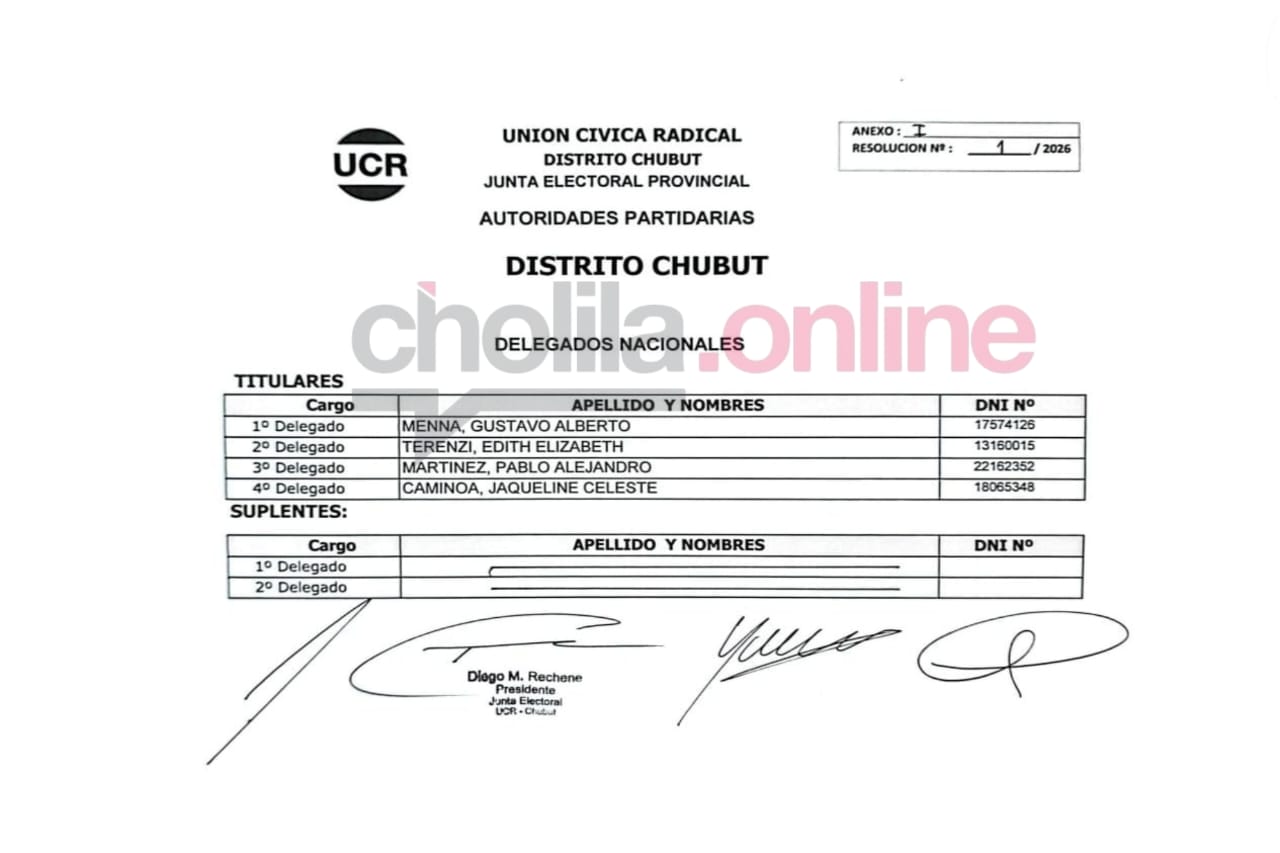 • La interna de la UCR Chubut: La Junta Electoral oficializó una sola lista para delegados nacionales