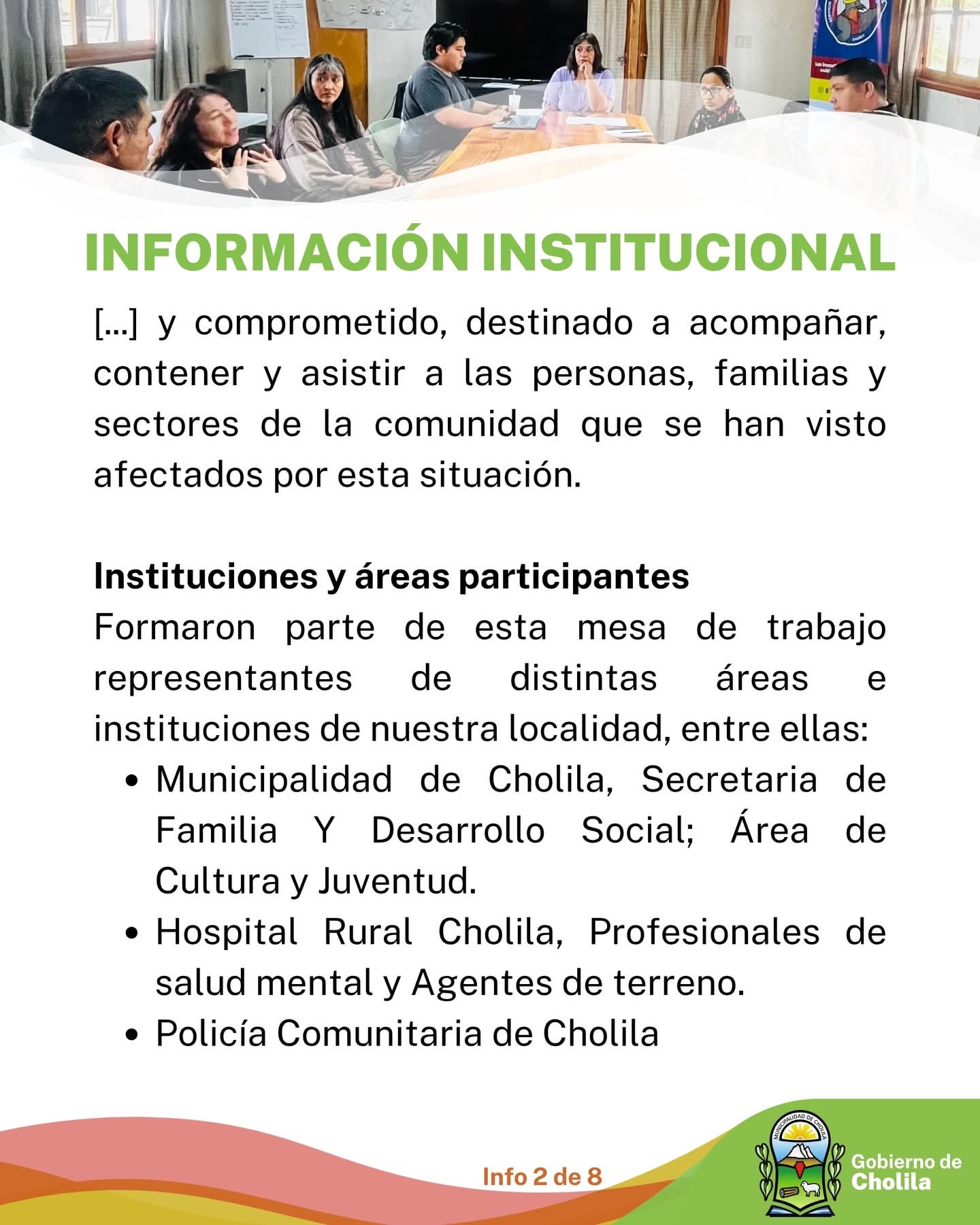- Hospital Rural de Cholila: Con la participación directa de profesionales de salud mental y agentes de terreno.