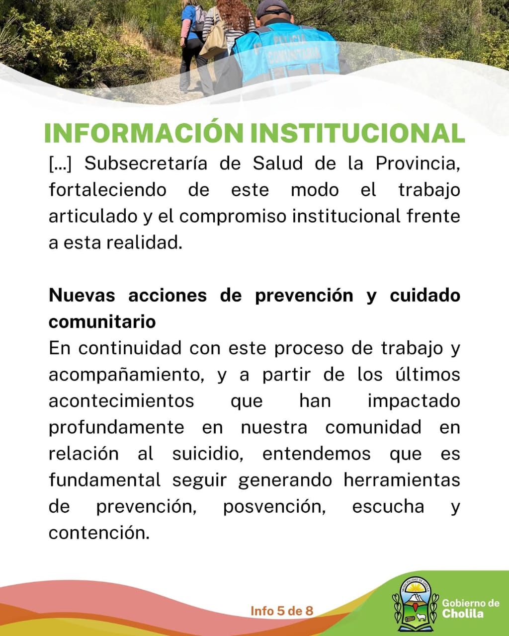 En un contexto de profunda preocupación social, la Municipalidad de Cholila ha emitido un extenso informe institucional que detalla las acciones y estrategias desplegadas para abordar la crisis que atraviesa la localidad. Esta respuesta oficial surge tras el firme requerimiento público realizado por Darío Fernández, Director de Cholila Online, quien recientemente exigió a las autoridades provinciales y municipales una intervención urgente ante la alarmante ola de suicidios que ha golpeado a la comunidad.