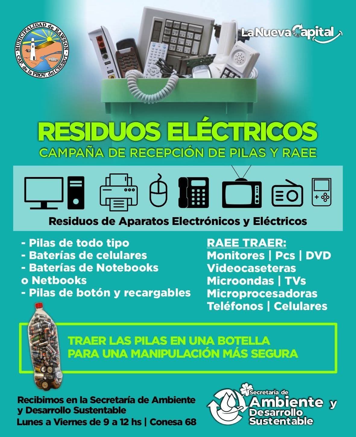 La Municipalidad de Rawson impulsa una nueva etapa de la campaña de recepción de pilas y Residuos de Aparatos Eléctricos y Electrónicos (RAEE), con el objetivo de promover la correcta disposición final de estos elementos y ampliar la información hacia distintos sectores de la ciudad.
