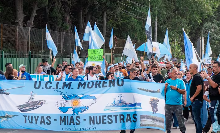 Varios centenares de vecinos y vecinas de Moreno , encabezados por excombatientes de la guerra de Malvinas y por la intendenta Mariel Fernández , se movilizaron ayer por la tarde coreando “¡Fuera, fuera, fuera yanquis fuera!” para repudiar la presencia de militares de Estados Unidos en ese municipio del Conurbano bonaerense, donde tiene su sede la VII Brigada Aérea.
