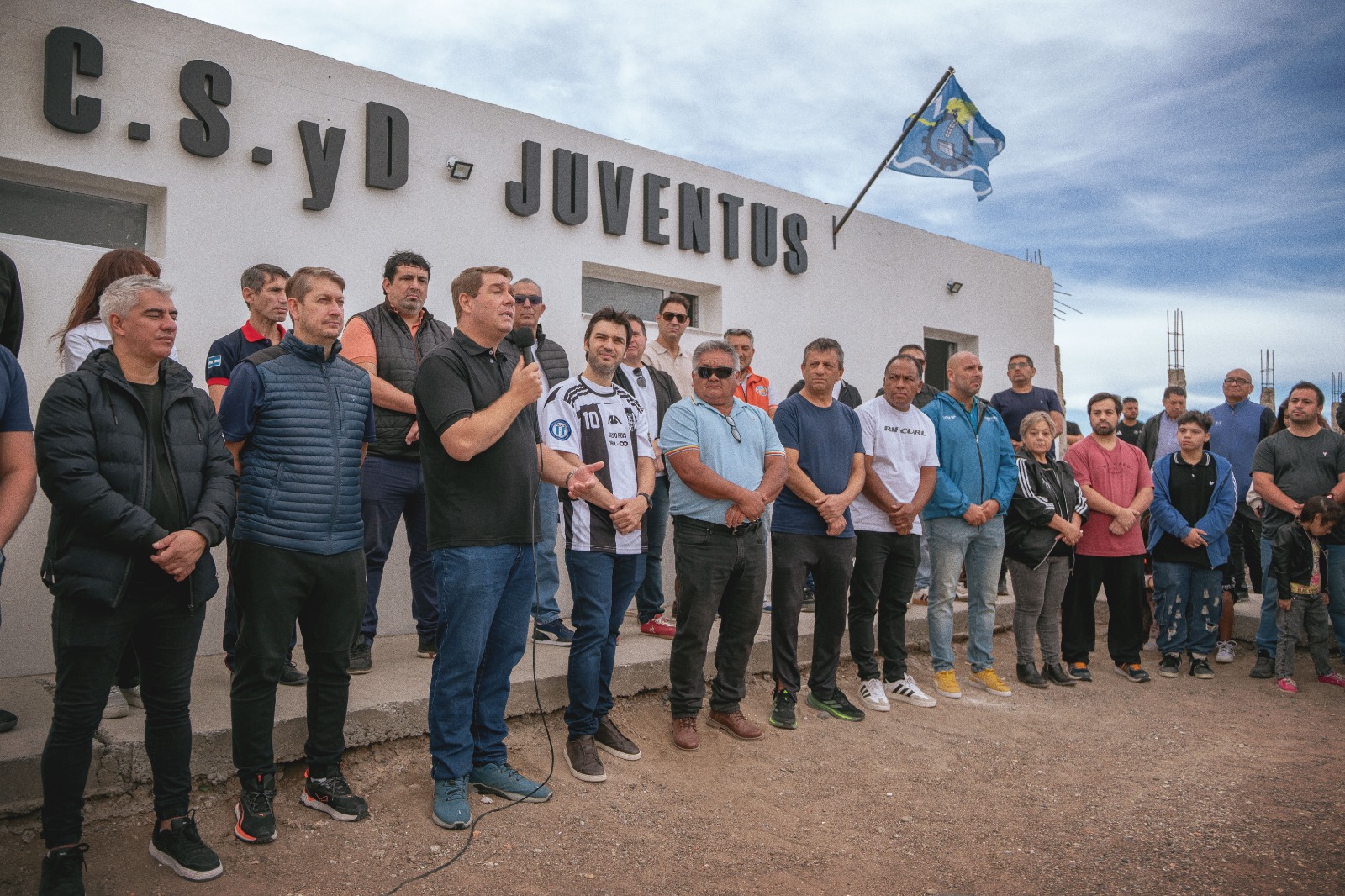 Este sábado 18 de abril, el intendente de Rawson, Damián Biss, participó del acto de inauguración del nuevo salón de usos múltiples del Club Social y Deportivo Juventus, un espacio que lleva el nombre de Diego Rois, en reconocimiento a su aporte y compromiso con la institución.