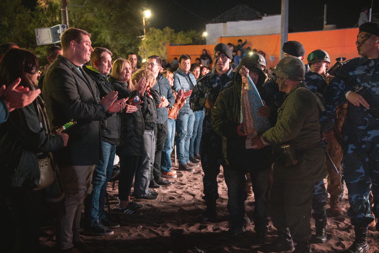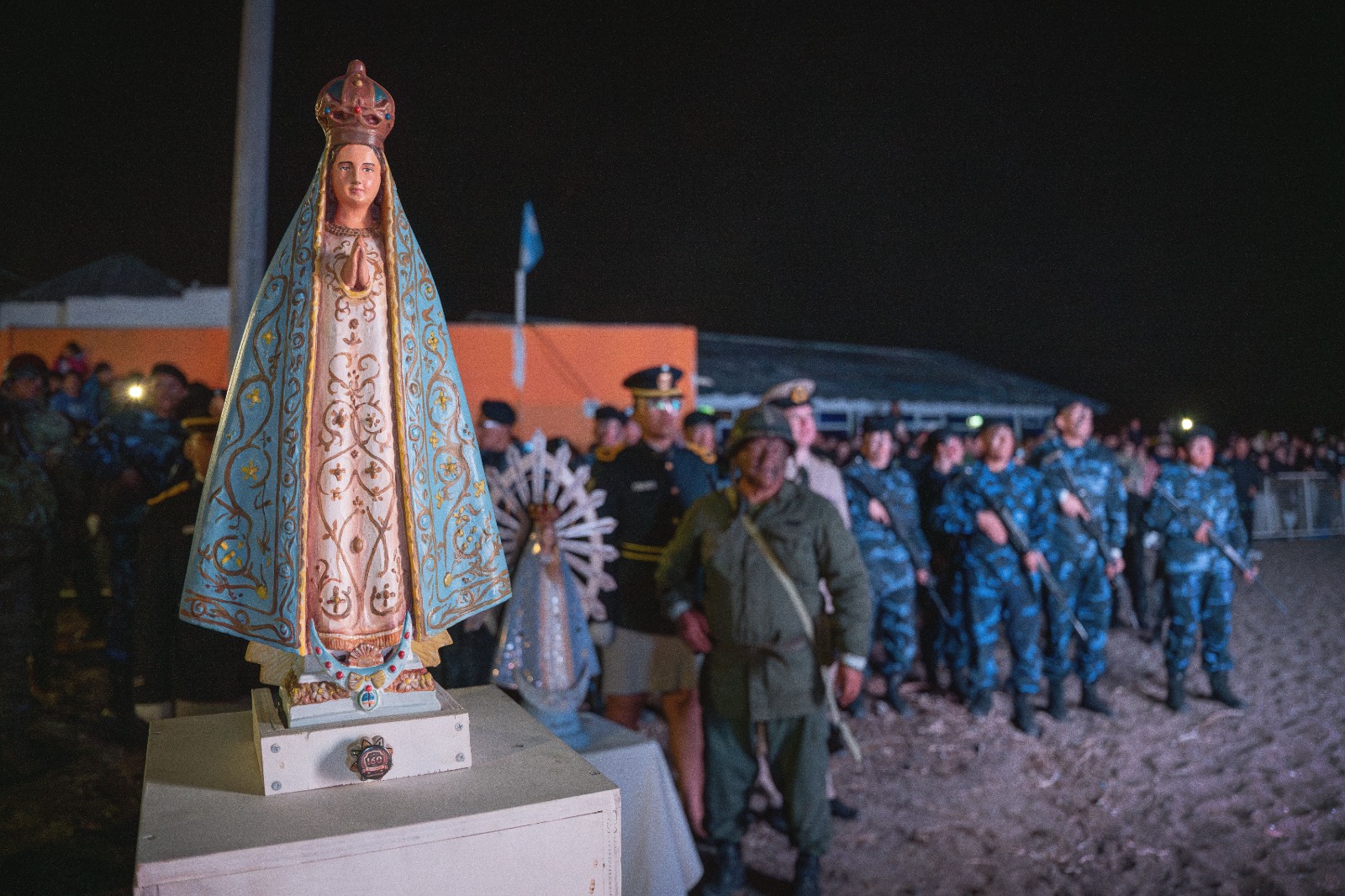 Cientos de vecinos vivieron la Vigilia y la quinta edición de la recreación de la Virgen de las Trincheras en Playa Unión, en vísperas del 44° aniversario de la Gesta de Malvinas. La ceremonia reunió a autoridades nacionales, provinciales y municipales, veteranos de guerra e instituciones de la comunidad.