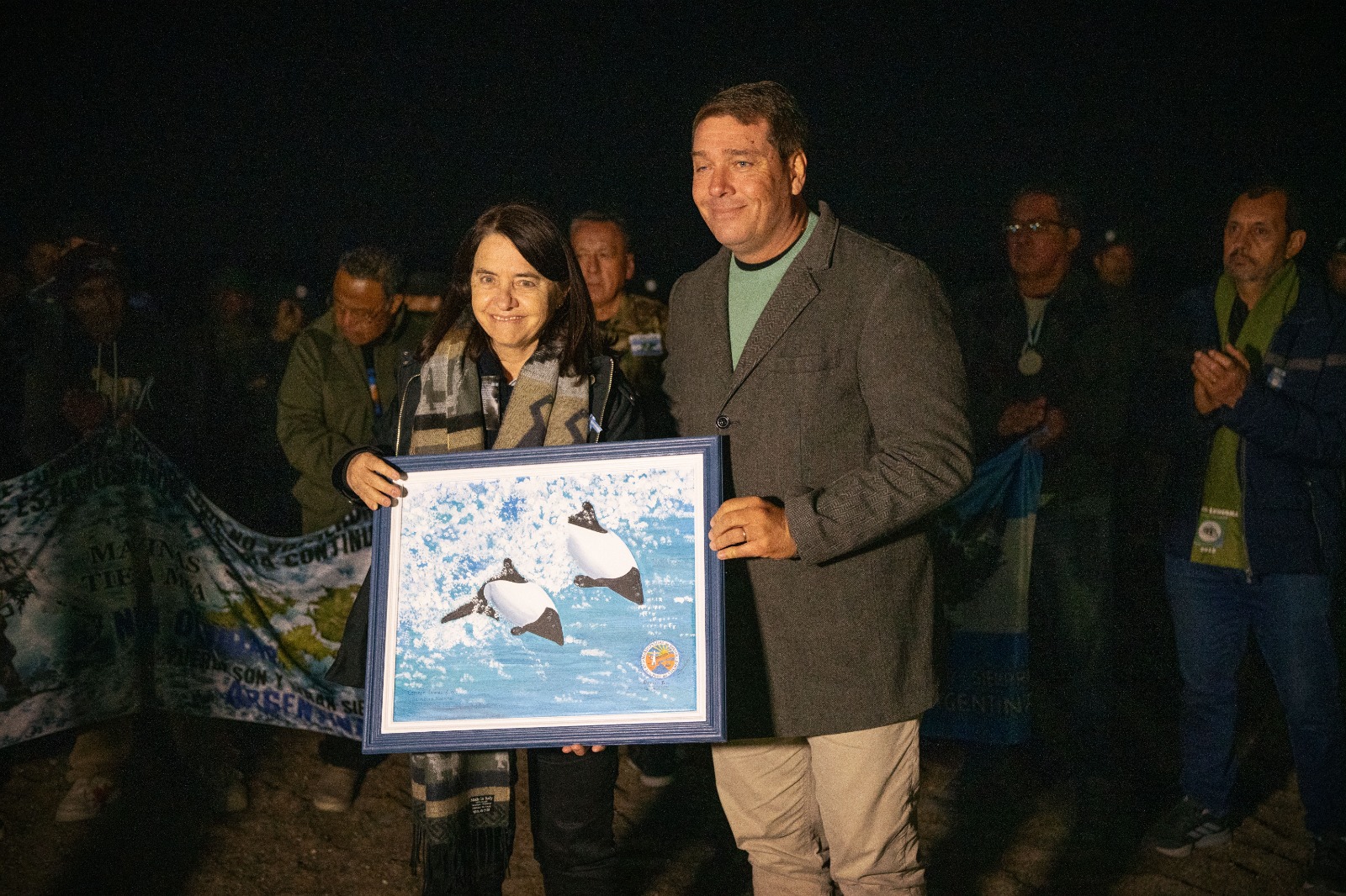 Durante la actividad, se realizó un minuto de silencio en homenaje a los héroes caídos y a los veteranos de la guerra de Malvinas. En este marco, la Senadora Nacional, Carmen Álvarez Rivero recibió un presente conmemorativo de manos del intendente, en reconocimiento a su visita.