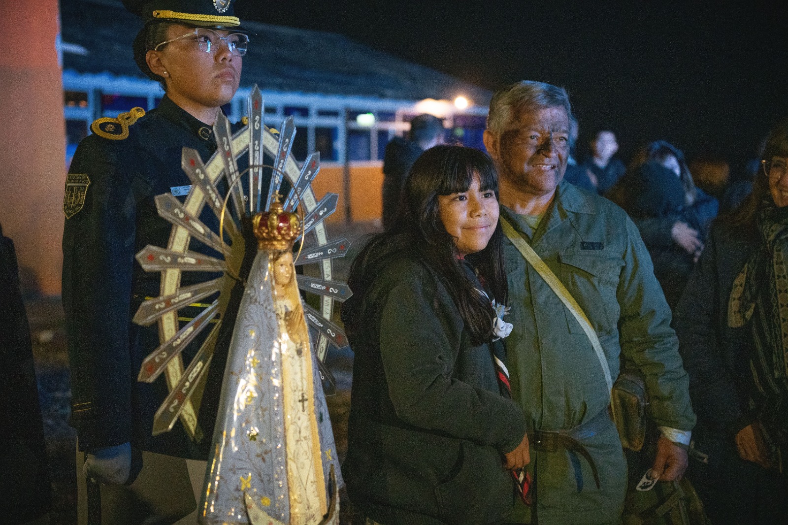 En su alocución, el intendente Biss destacó el trabajo de las instituciones que participaron de la organización, de los veteranos y las fuerzas de seguridad. También valoró la colaboración de la Diócesis de Rawson y del Senado de la Nación, que permitió la visita de la Virgen.