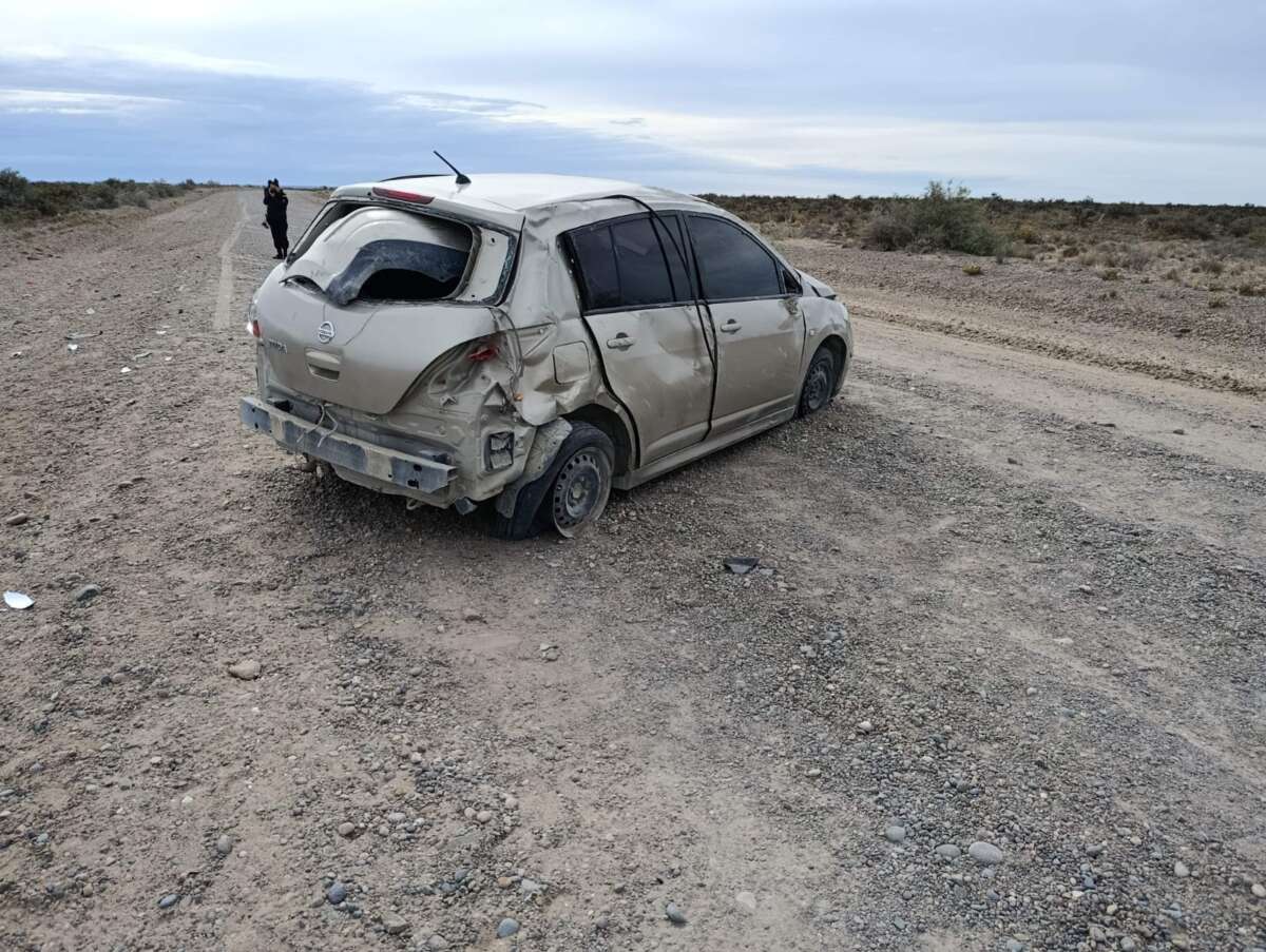 El siniestro ocurrió cerca de las 14:00 horas en el tramo de ripio que une Puerto Madryn con la capital provincial, cuando un vehículo Nissan Tiida perdió el control y terminó volcando a un costado del camino, a unos cinco kilómetros de Rawson.