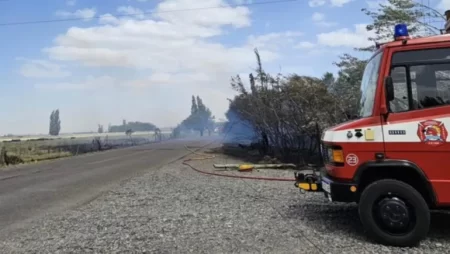 - Fuertes vientos en Chubut ocasionaron la caída de un poste de alta tensión, se incendió un campo y el fuego cruzó la ruta